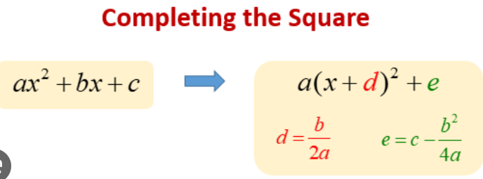 Completing the square formula | | | | | No | No |