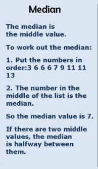 | Middle value when ordered | | | | No | No |