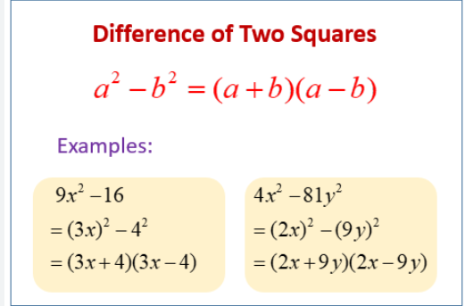 Difference of two squares | | | | | No | No |