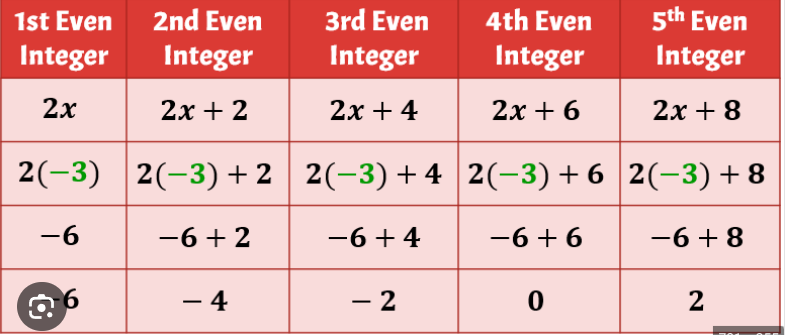 Three consecutive even numbers | | | | | No | No |