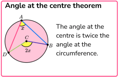 Angle at the centre theorem | Angle at centre = 2×2× angle at circumference | | | | No | No |
